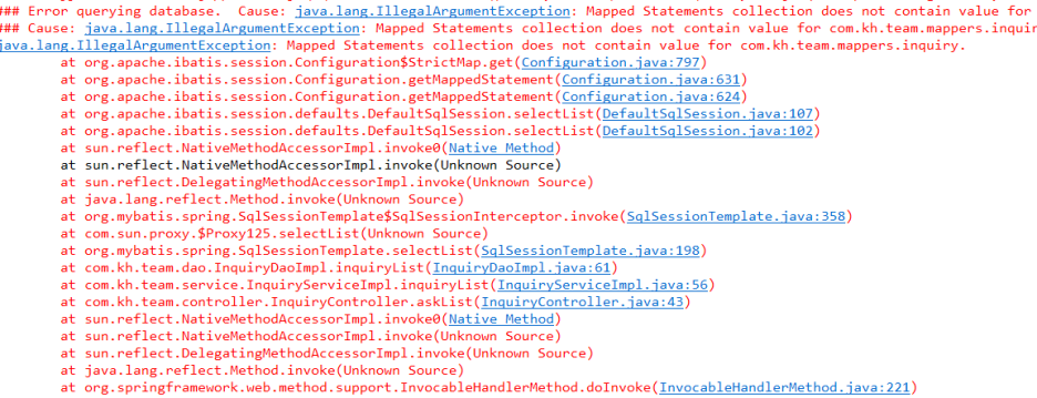 Mapped Statements collection does not contain value for com.kh.team.mappers.inquiry.